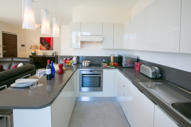 Large open plan dining, living and kitchen area, leading out to the garden – large windows show the amazing panorama